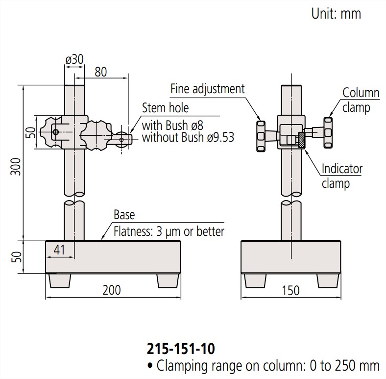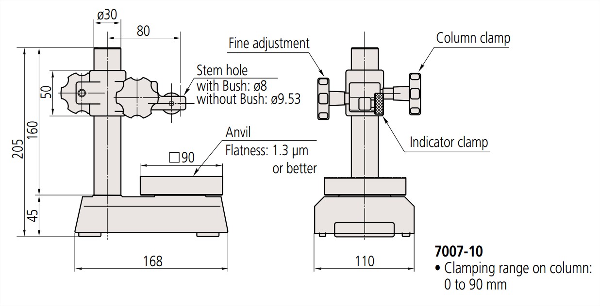 Đường kính lỗ dùng cho đồng hồ so: Φ4mm, Φ8mm