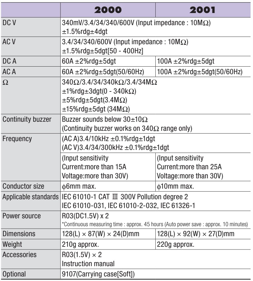 * DC A: Max 60A (Model 2000) / 100A (Model 2001)