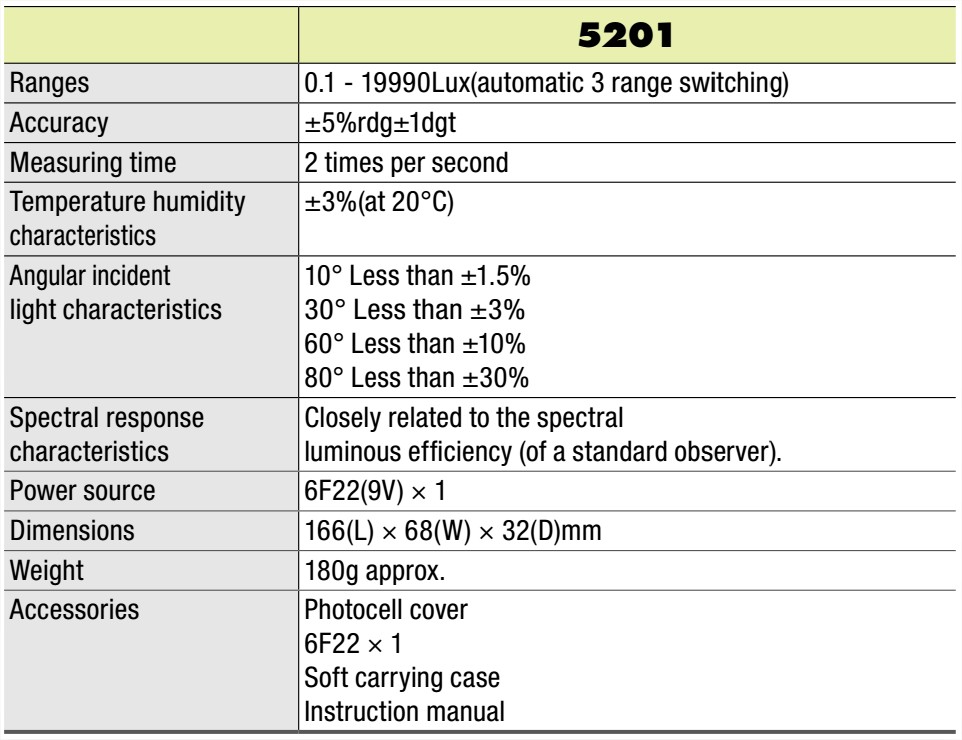Giải đo : 0.1 ~ 19990 Lux (tự động chuyển đổi 3 giới hạn đo)