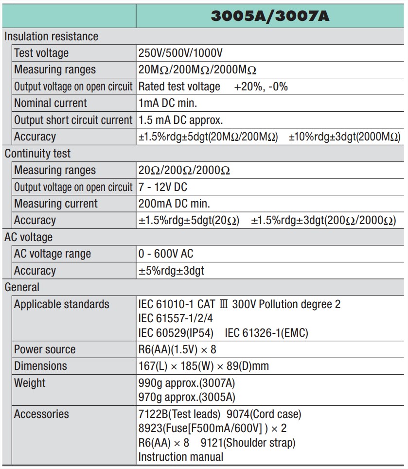 Độ chính xác : ±1.5%rdg±5dgt (20MΩ/200MΩ)