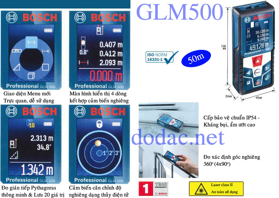 Giao hàng nhanh miễn phíMáy đo khoảng cách laser Bosch GLM 500 - 50m