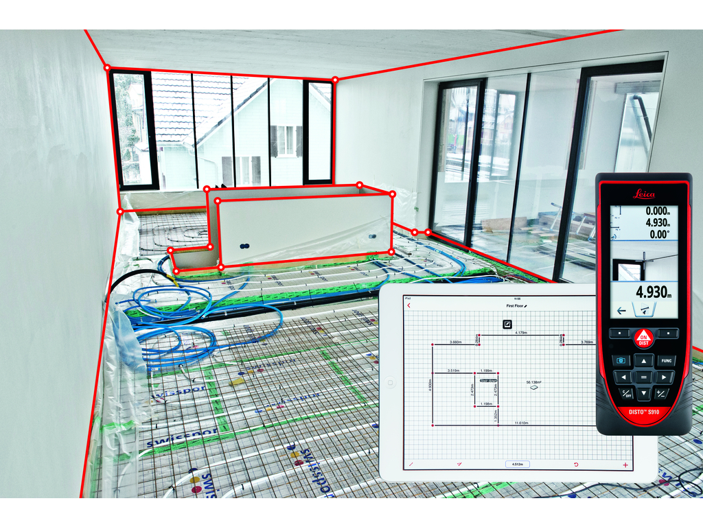 Với Leica DISTO S910 bạn có thể tính được diện tích của một hình phằng bất kỳ lên đến 30 cạnh như trần nhà, sàn nhà, tường nhà, mái nhà, diện tích đất....Sự tiện lợi chủa chức năng này là bạn có thể đo gián tiếp, các hình phẳng có phương bất kỳ - tức là bạn chỉ cần đặt thiết bị đo ở một vị trí cố định và đo đến các góc của hình phẳng, thiết bị sẽ tự động tính toán diện tích một cách nhanh chóng và chính xác nhất.
