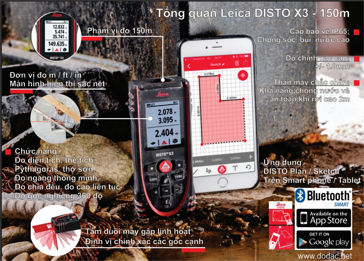 Giao hàng nhanh miễn phíMáy đo khoảng cách laser Leica DISTO X3 - 150m là Model mới nhất (cùng với Leica DISTO X4) của hãng Leica Geosystems - Thụy Sĩ tại thị trường thế giới cũng như ở Việt Nam. Disto X3 đã có mặt tại thị trường Việt nam vào tháng 8/2018