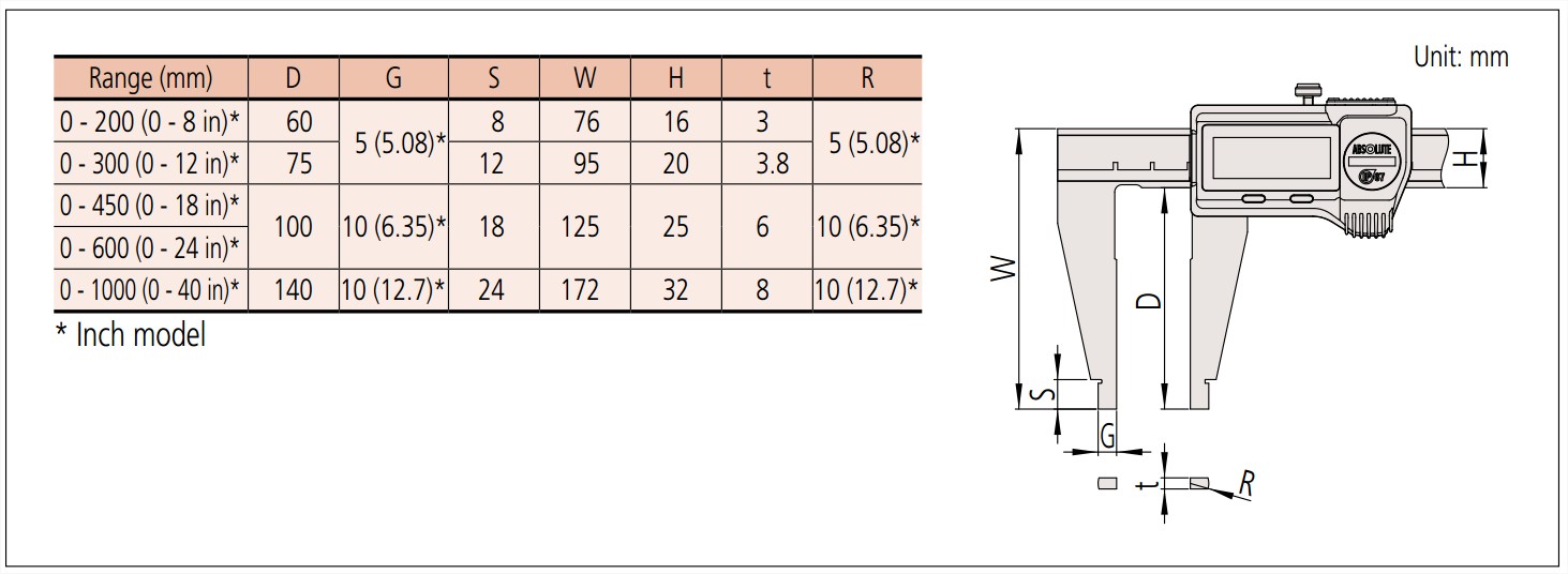 Phạm vi đo: 0-200mm / 10.1 - 210mm